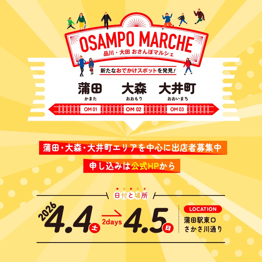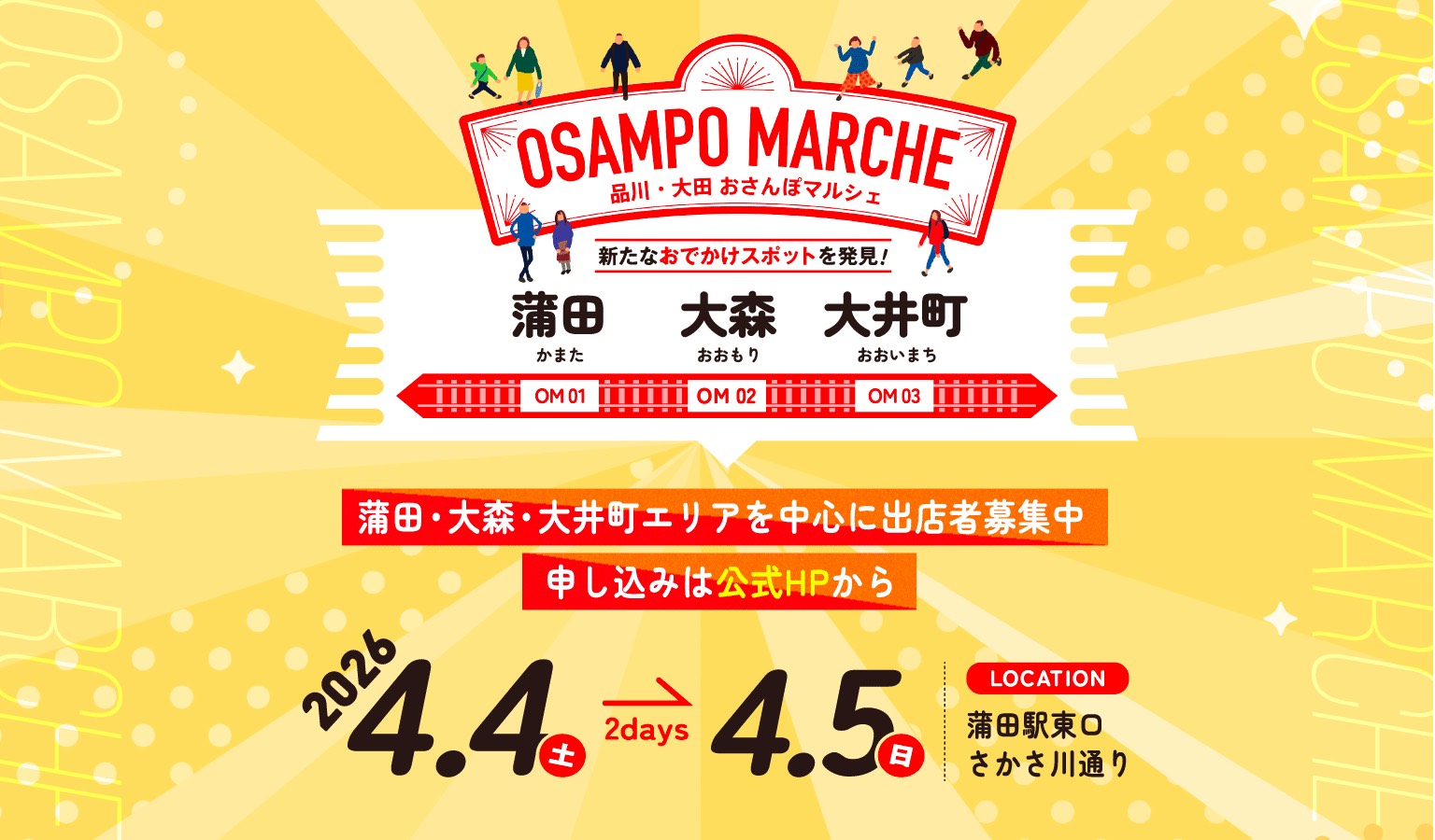 2026年4月4日〜5日、蒲田駅東口さかさ川通りにて第7回大田品川おさんぽマルシェの開催が決定しました!